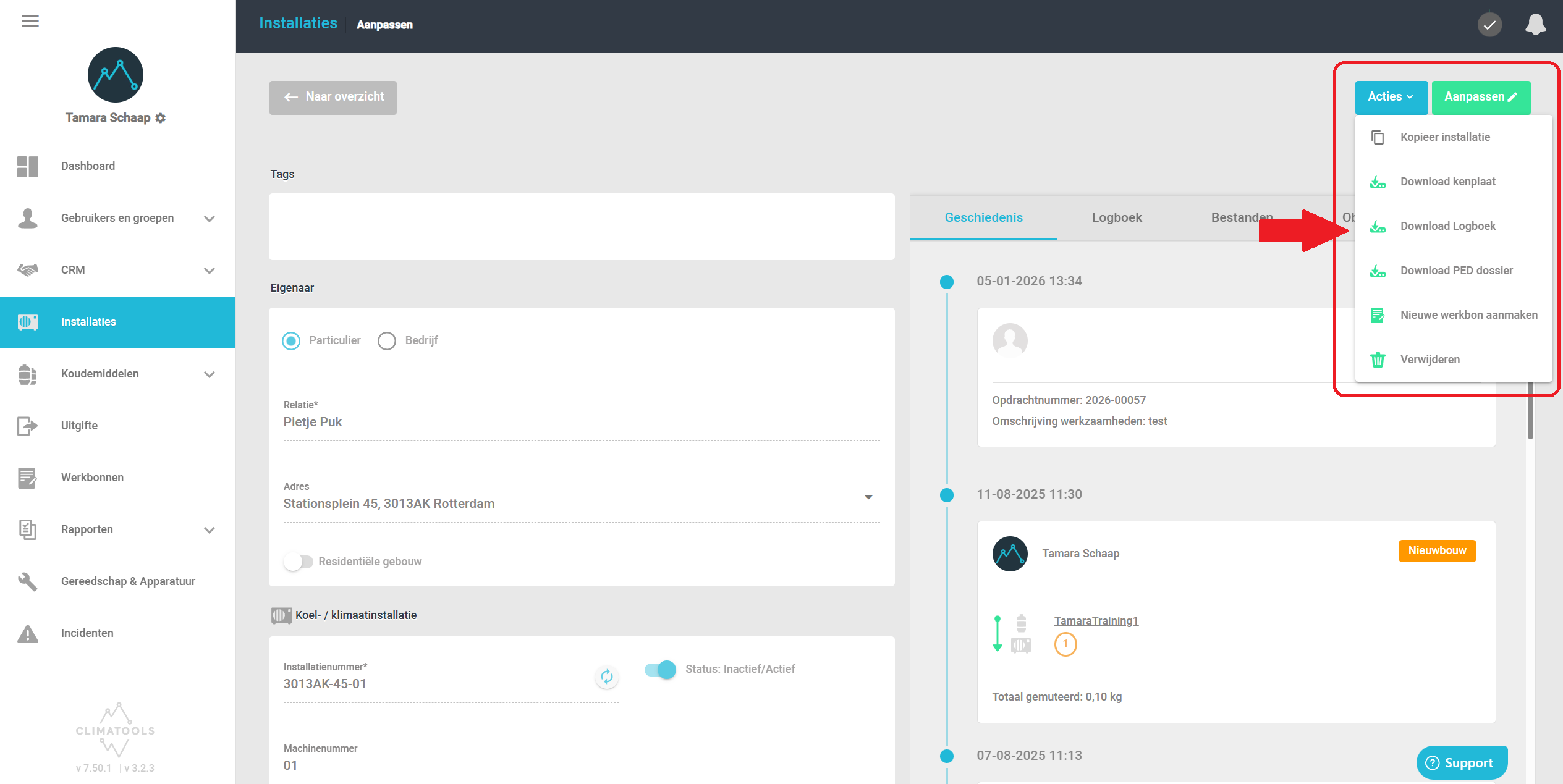 Om het logboek van een installatie te downloaden, moet je de volgende stappen volgen: