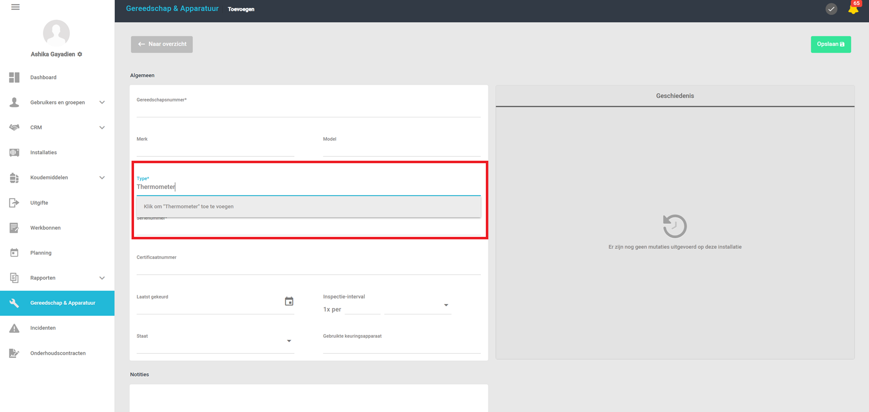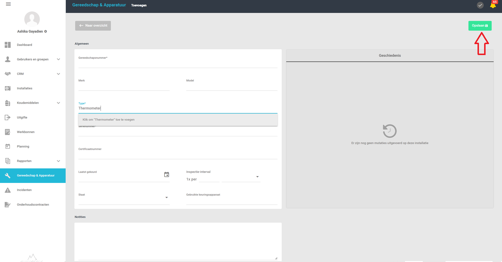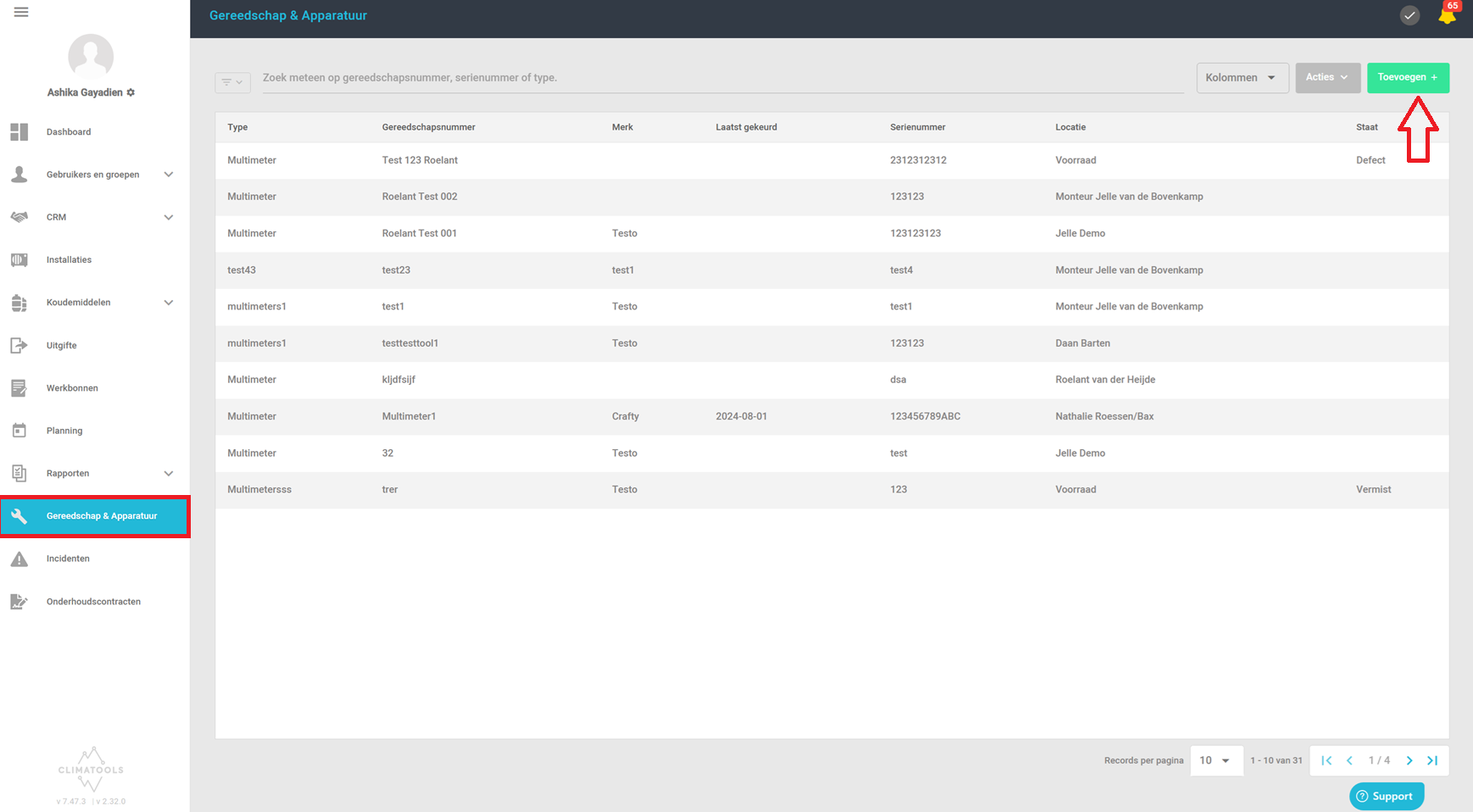 Vanuit de richtlijnen is het verplicht om de gereedschappen te registreren die gebruikt worden om metingen mee uit te voeren. Deze gereedschappen voeg je dus ook eerst toe aan Climatools via de "Gereedschap & Apparatuur module".