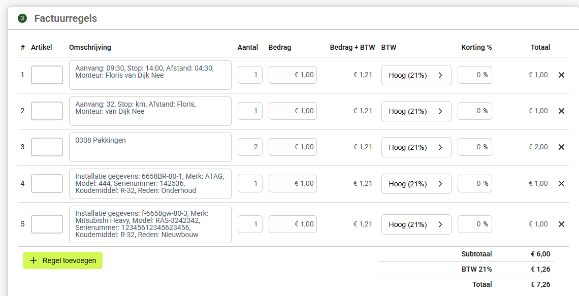 Na controle — en eventuele correcties, zoals een aangepaste prijs of toegevoegd meerwerk — wordt de factuur definitief gemaakt en verzonden naar de klant.